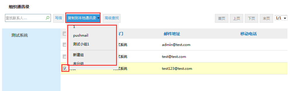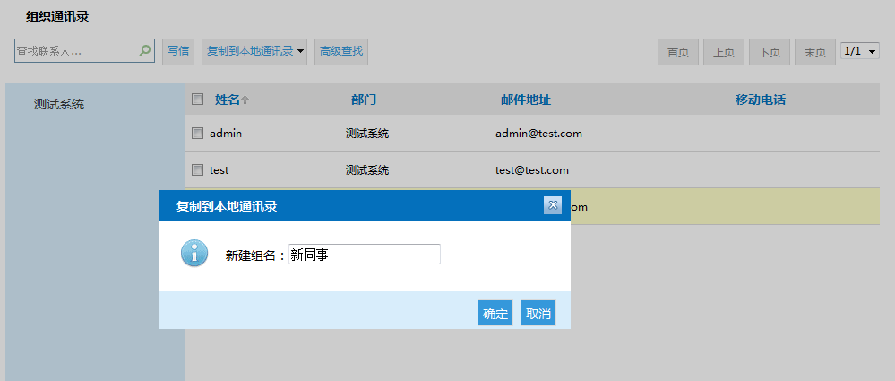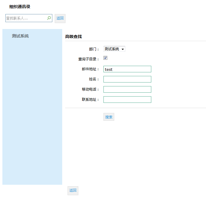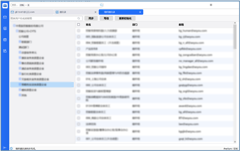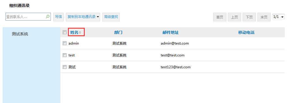 组织通讯录功能是邮箱用户所在单位的通讯录,组织通讯录中可查看到单位同事联系人和部门信息。