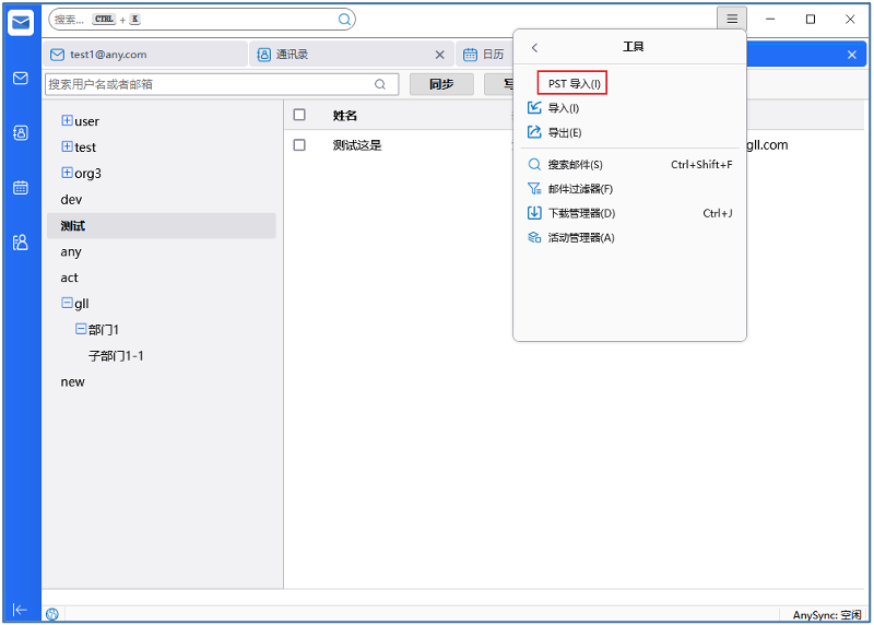 设置-工具-PST导入