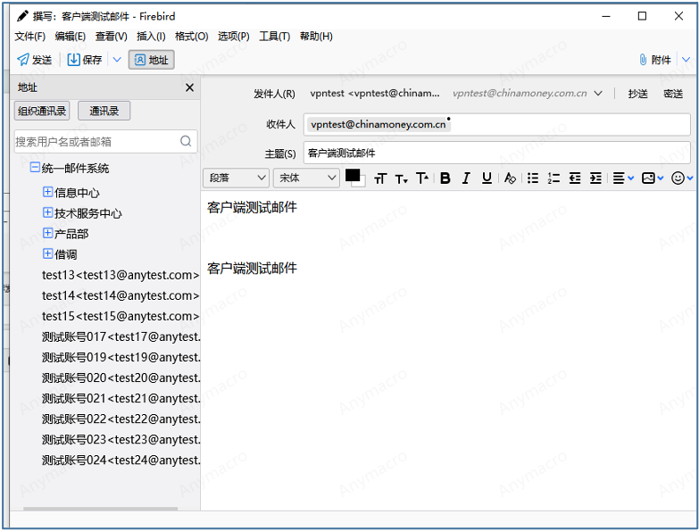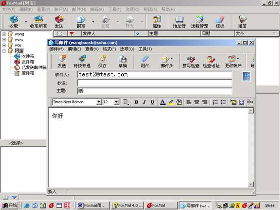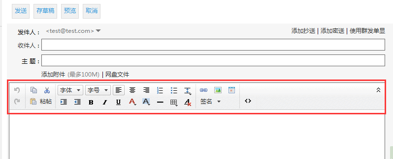单击工具栏上的“撰写”按钮,打开邮件编辑器,如图所示: