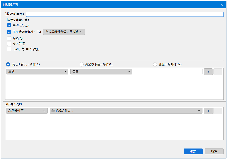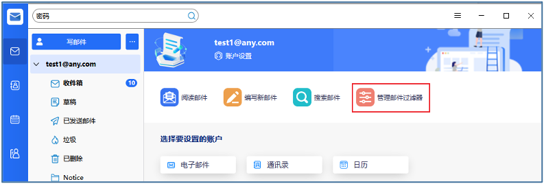 点击【管理邮件过滤器】按钮,打开邮件过滤器页面,可根据具体条件添加过滤条件