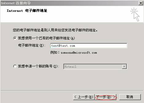 在Foxmail安装完毕后,第一次运行时,系统会自动启动向导程序,引导用户添加第一个邮件账户,在“新建用户向导”窗口内输入邮箱地址。如下图所示: