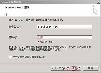 点击“下一步”在新打开的窗口内选择服务器类型和输入用户账号和密码。如下图所示: