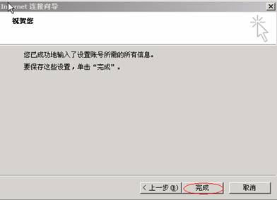点击“下一步”按钮,屏幕将显示“帐户建立完成”窗口。单击“完成”按钮,完成帐户建立。
