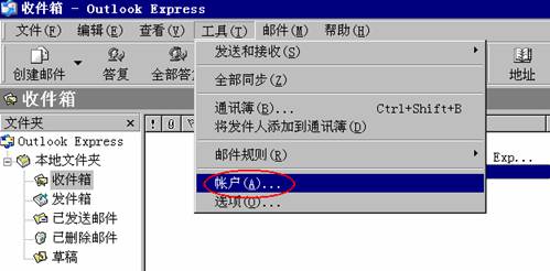 ●在“工具”菜单中,单击“帐户”。