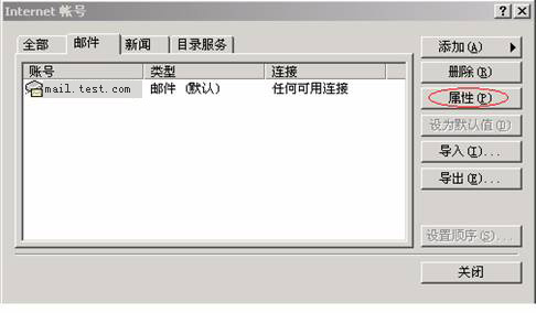 ●选定该帐户,然后单击“属性”。