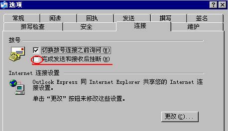 ●在“连接”选项卡中,选中“完成发送和接收后挂断”复选框,如图所示。