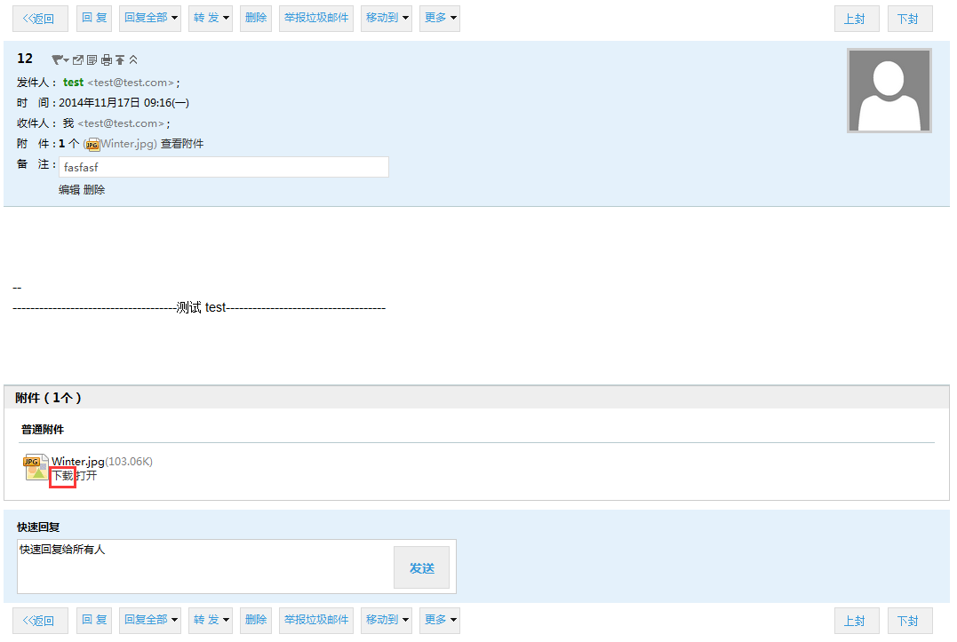 下载功能将这封信的原信下载到你的本地去。一般用户可能不需要这样应用,仅仅需要下载相应的附件即可。如果下载附件,可以在附件下,点击“下载”即可。