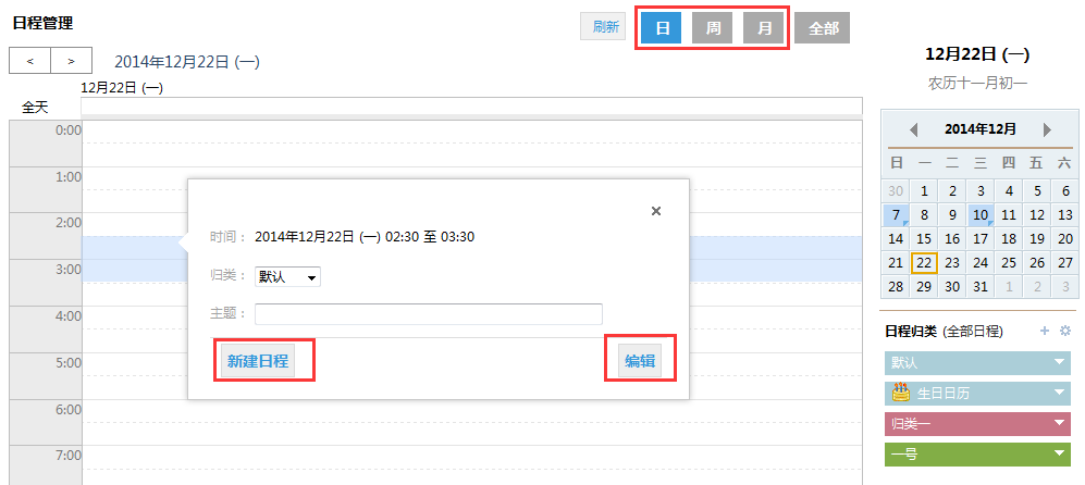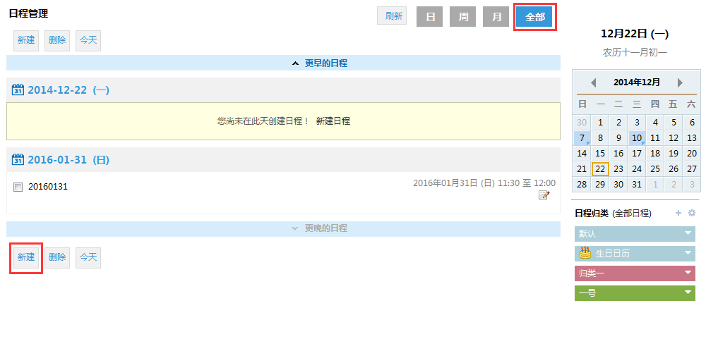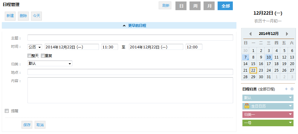 可在日历中添加普通日程提醒,也可添加会议邀请。日程或会议到期时将会收到提醒通知。