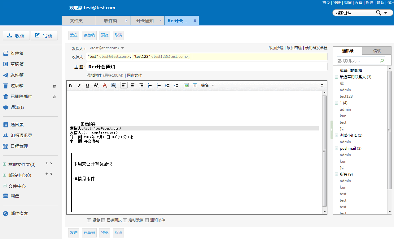 本邮件系统提供了强大的邮件再编辑功能,任何保存到草稿箱里面的邮件,都可以重新进行编辑,这个功能是其他很多邮件系统所不具备的。